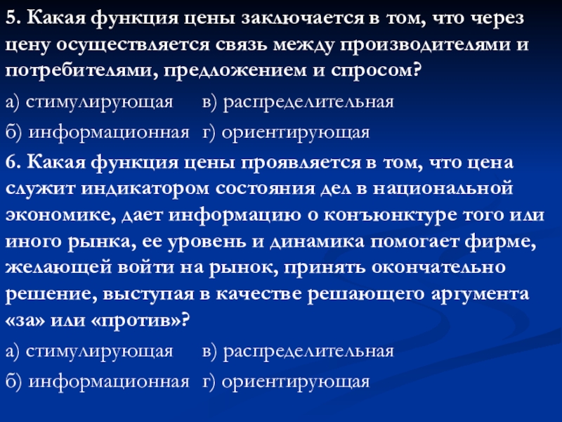 Слайд 235. Какая функция цены заключается в том, что через цену осуществляется
