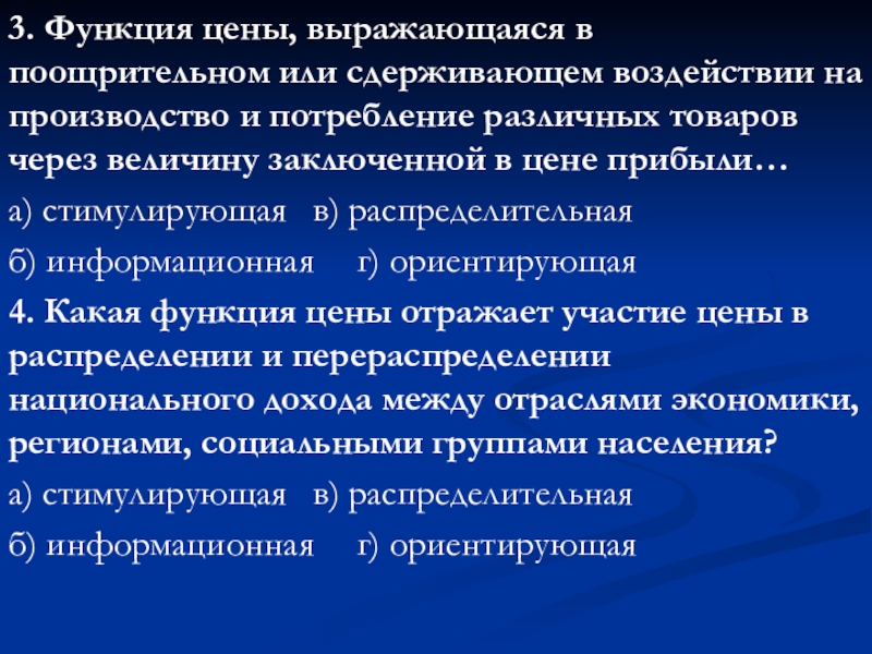 4. Какая функция цены отражает участие цены в распределении и перераспределении национального дохода между отраслями экономики, регионами, социальными группами населения?