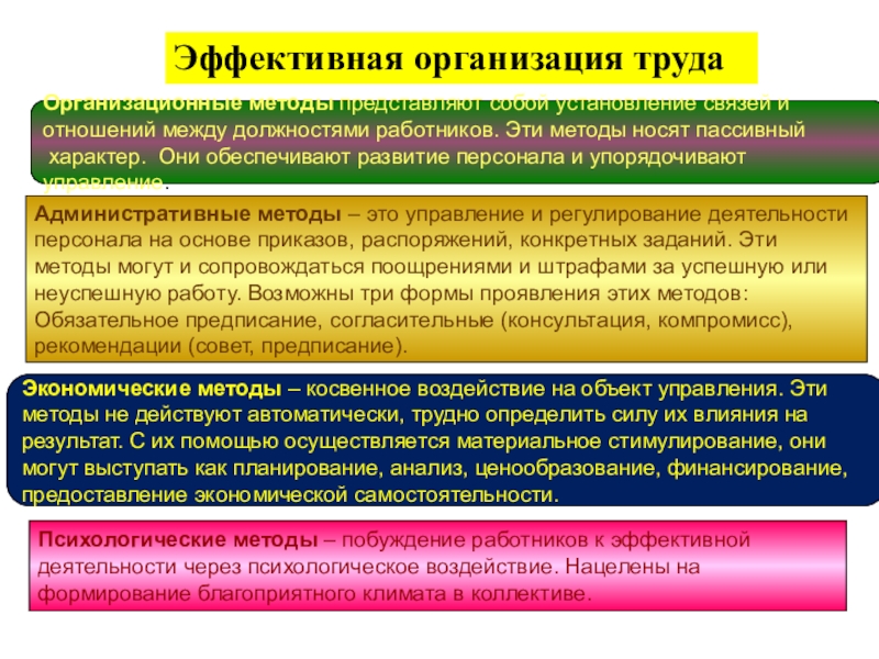 Экономические методы – косвенное воздействие на объект управления. Эти