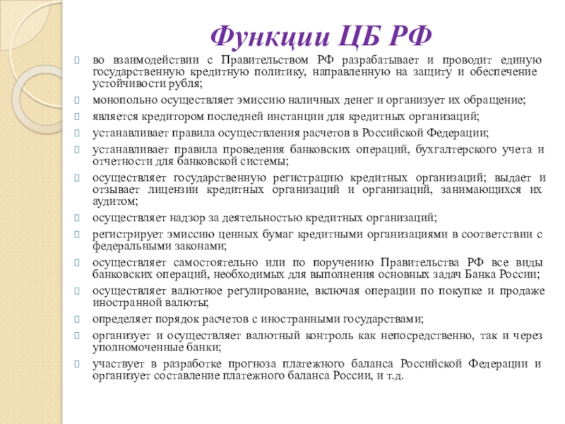 Основные функции и задачи Центрального Банка (ЦБ) РФ.