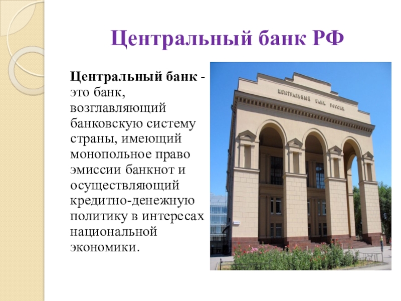 сформировать представление об основных функциях и задачах Центрального Банка (ЦБ) РФ;
