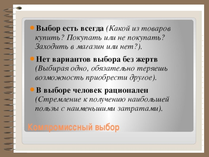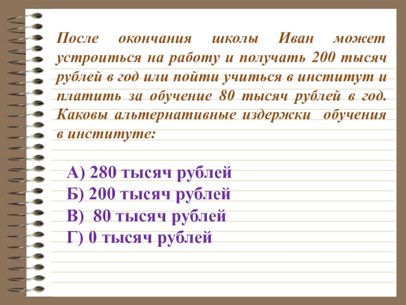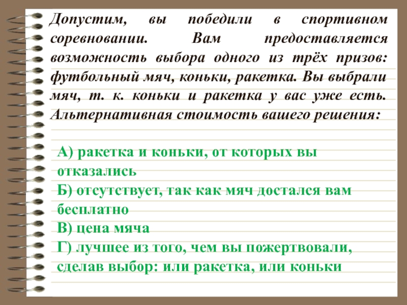 Г) лучшее из того, чем вы пожертвовали, сделав выбор: или ракетка, или коньки