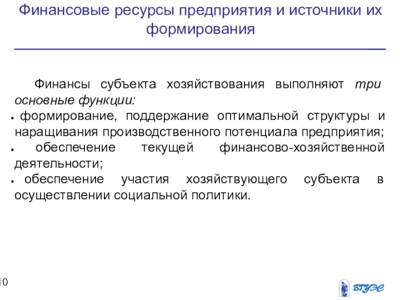Слайд 10Финансовые ресурсы предприятия и источники их формирования