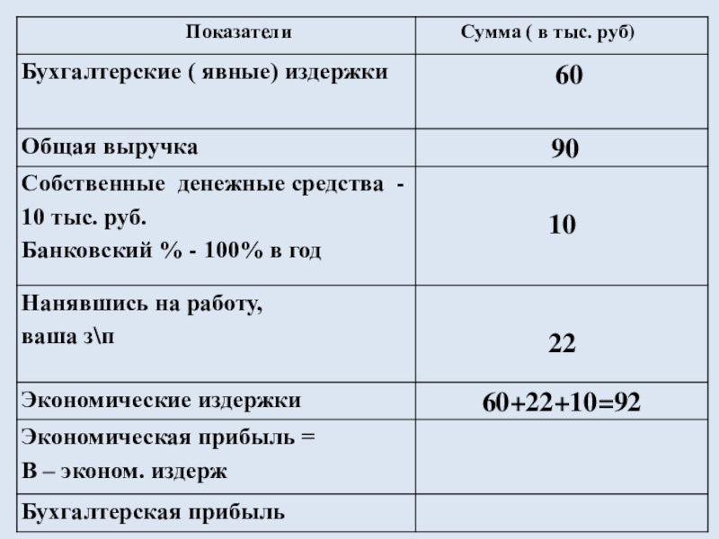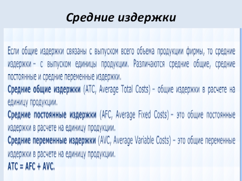 Бухгалтерские издержки – общая сумма внешних ( явных) издержек фирмы на производство товаров или услуг в течение определённого времени.