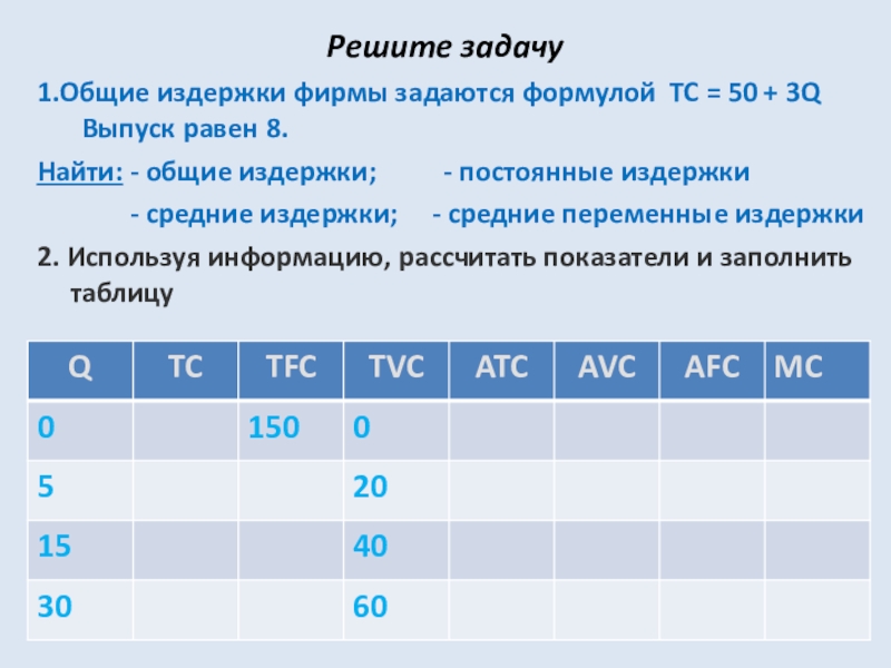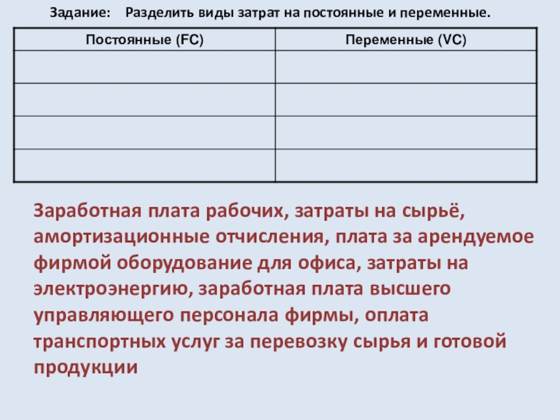 Задание: Разделить виды затрат на постоянные и переменные.