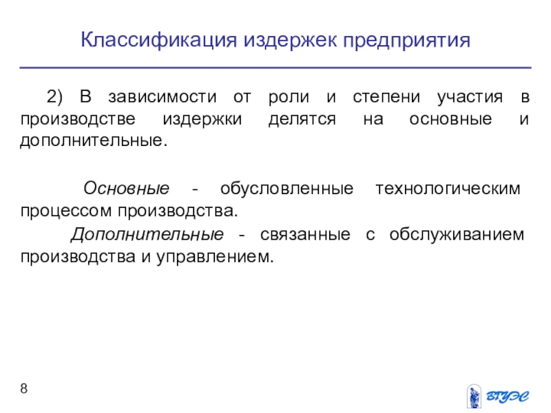 Дополнительные - связанные с обслуживанием производства и управлением.