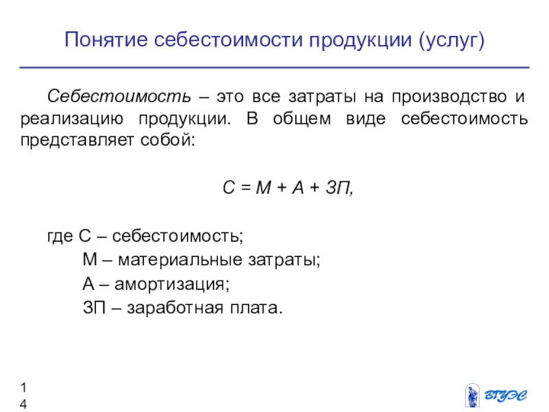 реализацию продукции. В общем виде себестоимость представляет собой: