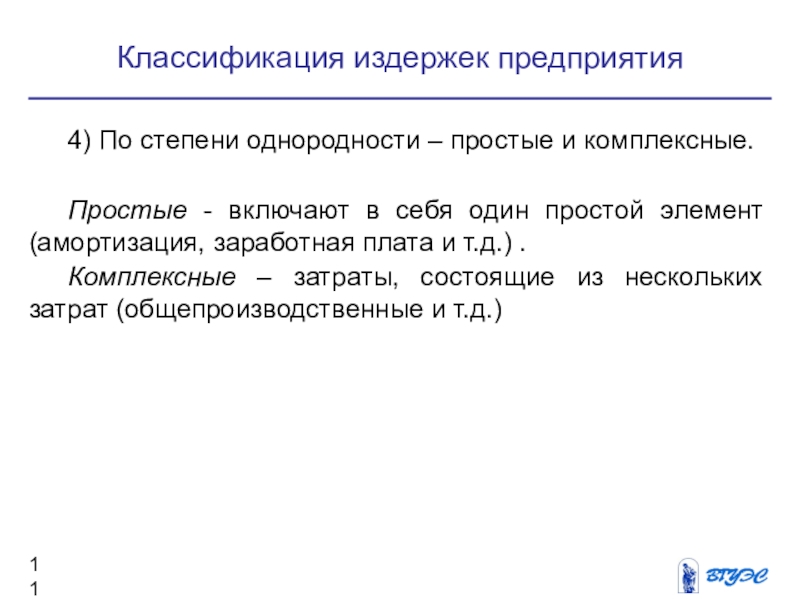 включают в себя один простой элемент (амортизация, заработная плата и т.д.) .