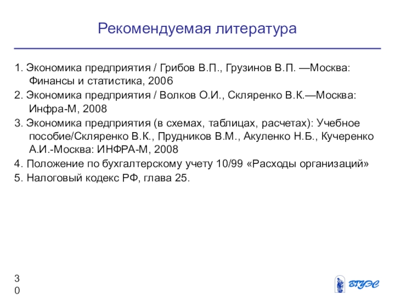 1. Экономика предприятия / Грибов В.П., Грузинов В.П. —Москва: Финансы