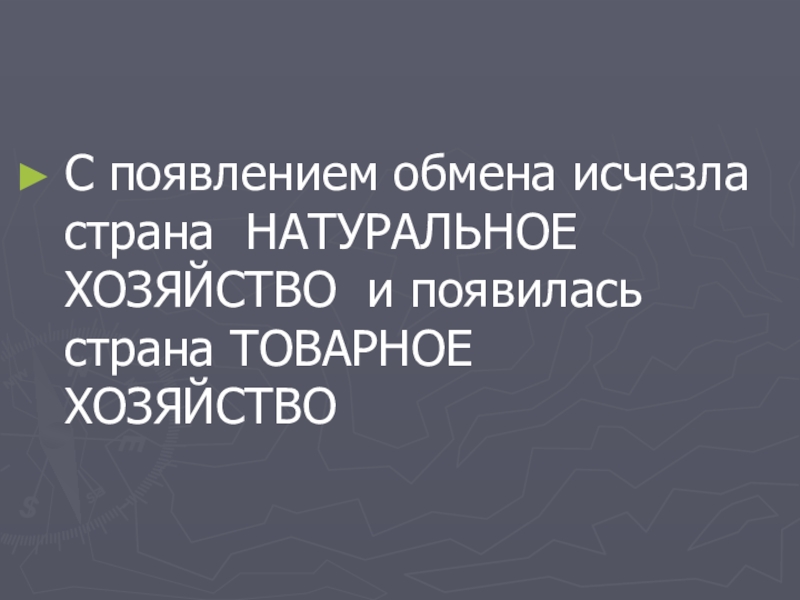 С появлением обмена исчезла страна НАТУРАЛЬНОЕ ХОЗЯЙСТВО и появилась страна ТОВАРНОЕ ХОЗЯЙСТВО