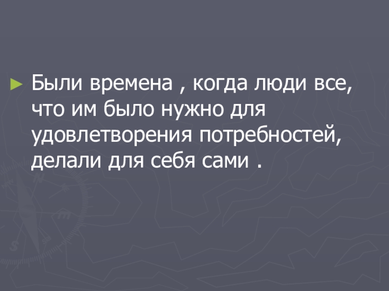 Были времена , когда люди все, что им было нужно для удовлетворения потребностей, делали для себя сами .
