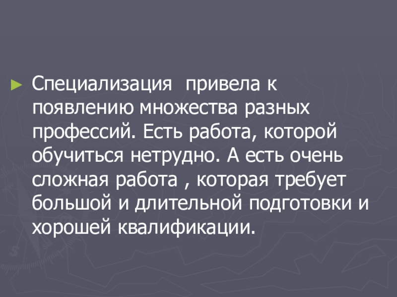 Специализация привела к появлению множества разных профессий. Есть работа, которой обучиться