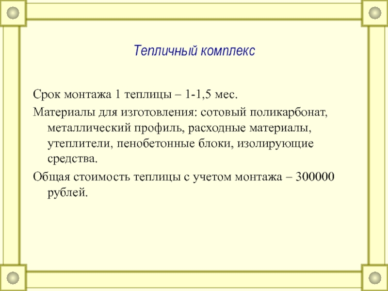 Технико-экономические обоснование проекта