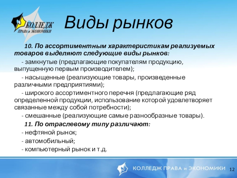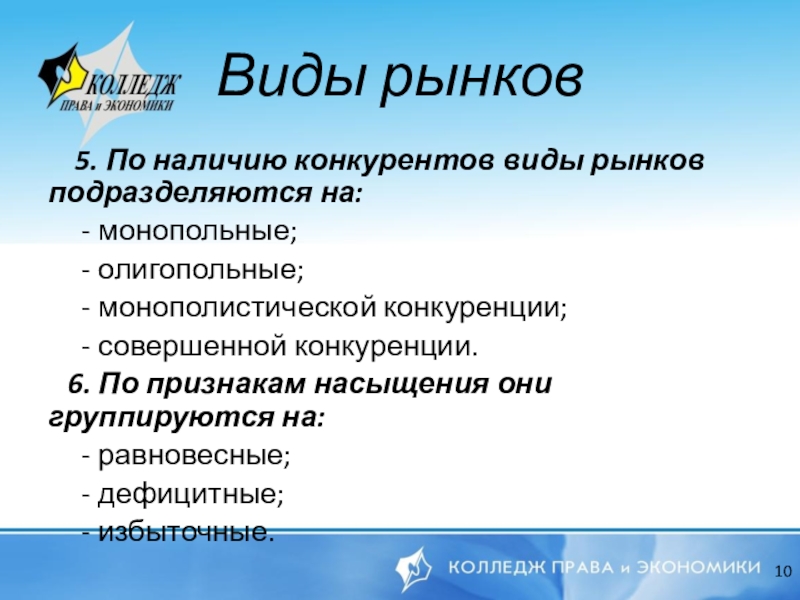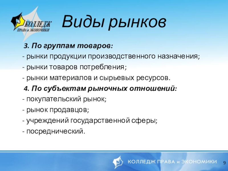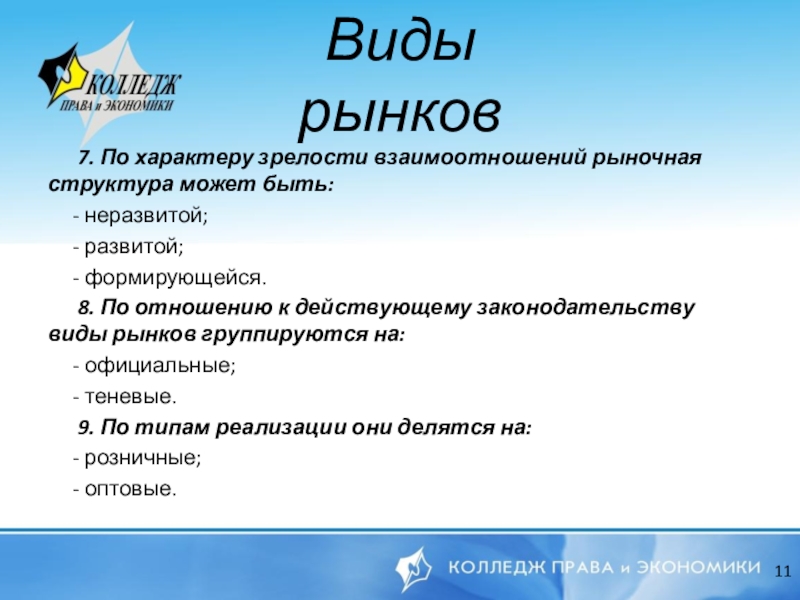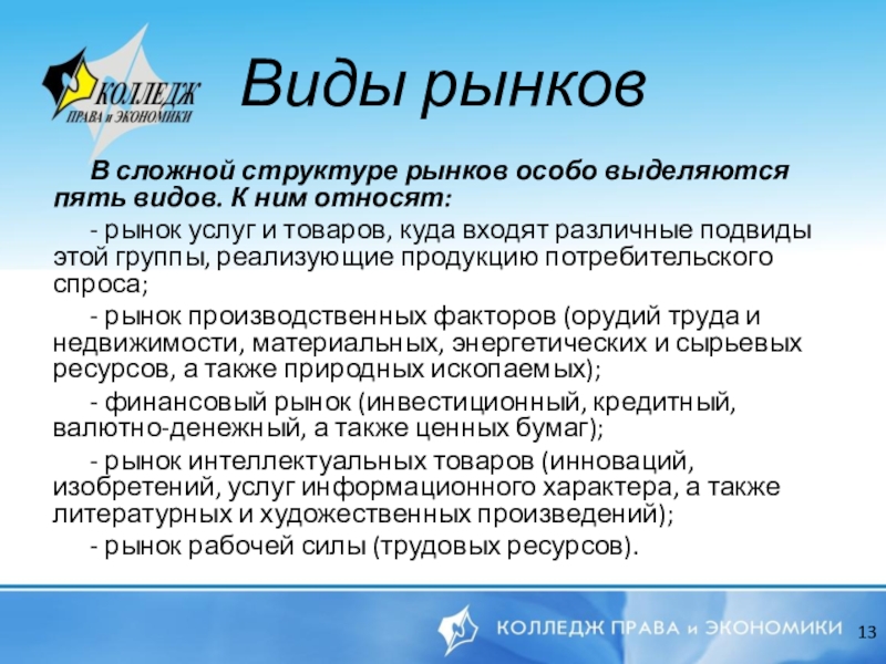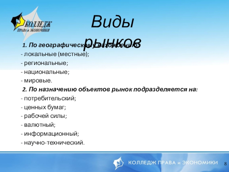 Виды рынков