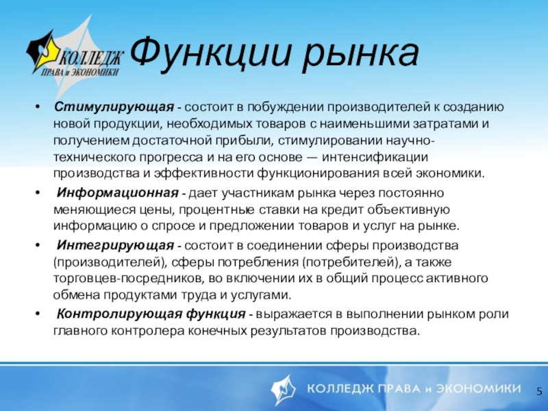 Функции рынка