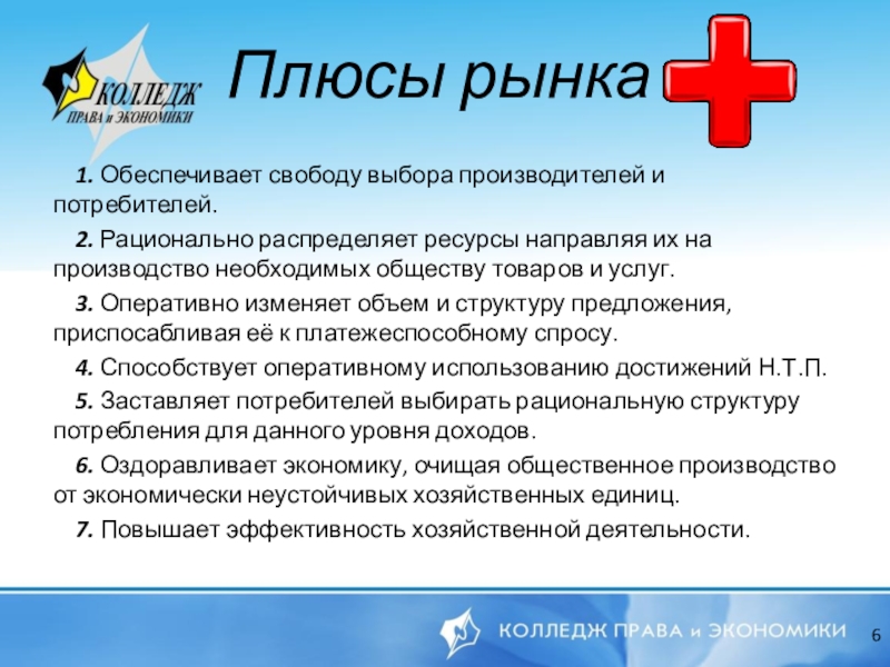 Плюсы рынка