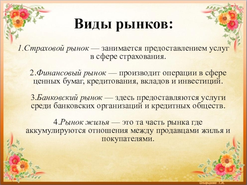 Слайд 11Виды рынков: