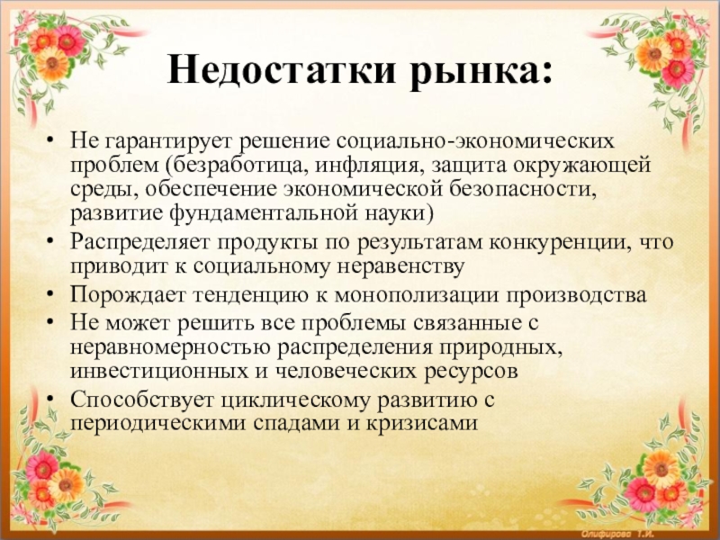 Слайд 10Недостатки рынка: