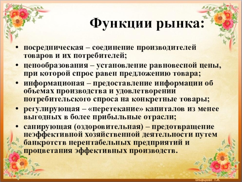 Слайд 7 Функции рынка: