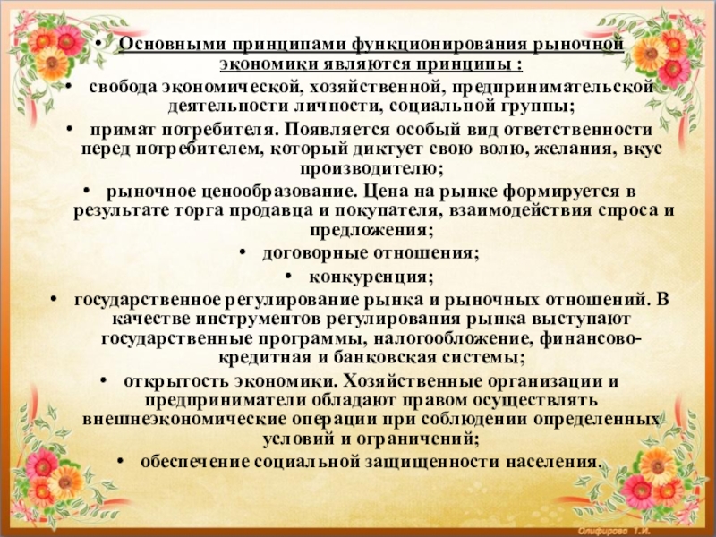 Слайд 8Основными принципами функционирования рыночной экономики являются принципы :