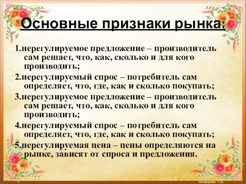 Слайд 4Основные признаки рынка: