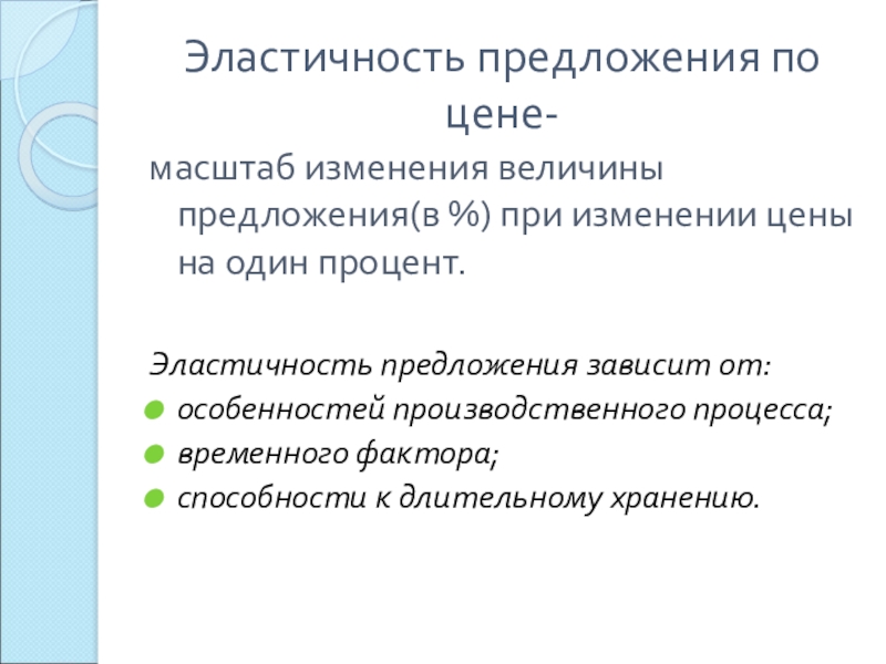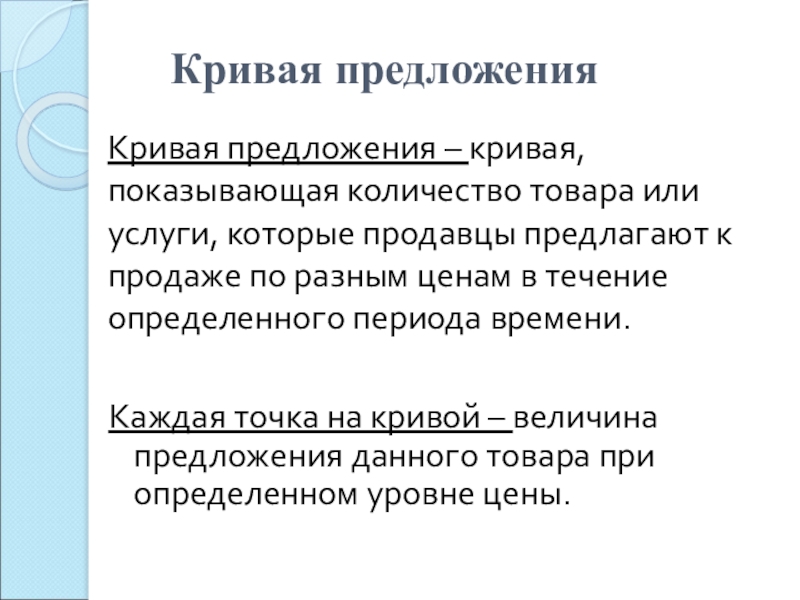 Каждая точка на кривой – величина предложения данного товара при определенном уровне цены.