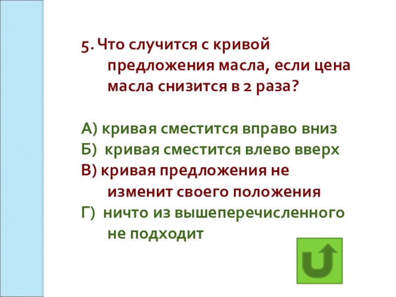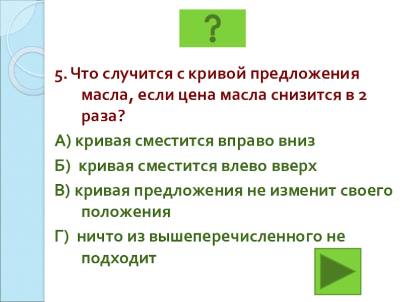 Слайд 265. Что случится с кривой предложения масла, если цена масла снизится