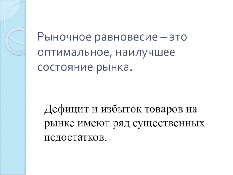 Слайд 42Рыночное равновесие – это оптимальное, наилучшее состояние рынка.