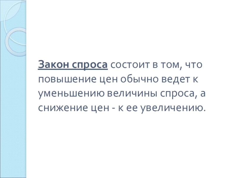 Слайд 6Закон спроса состоит в том, что повышение цен обычно ведет к