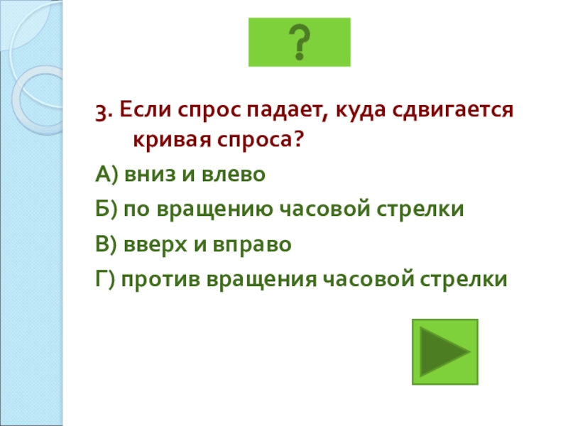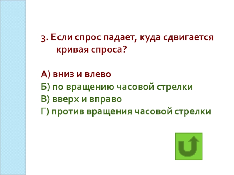 Слайд 303. Если спрос падает, куда сдвигается кривая спроса?