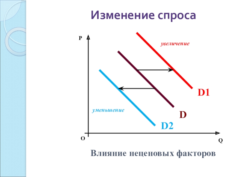 влиянием этих факторов кривая спроса может изменять свое положение на графике, смещаясь влево или вправо. Данное явление называется изменением спроса.