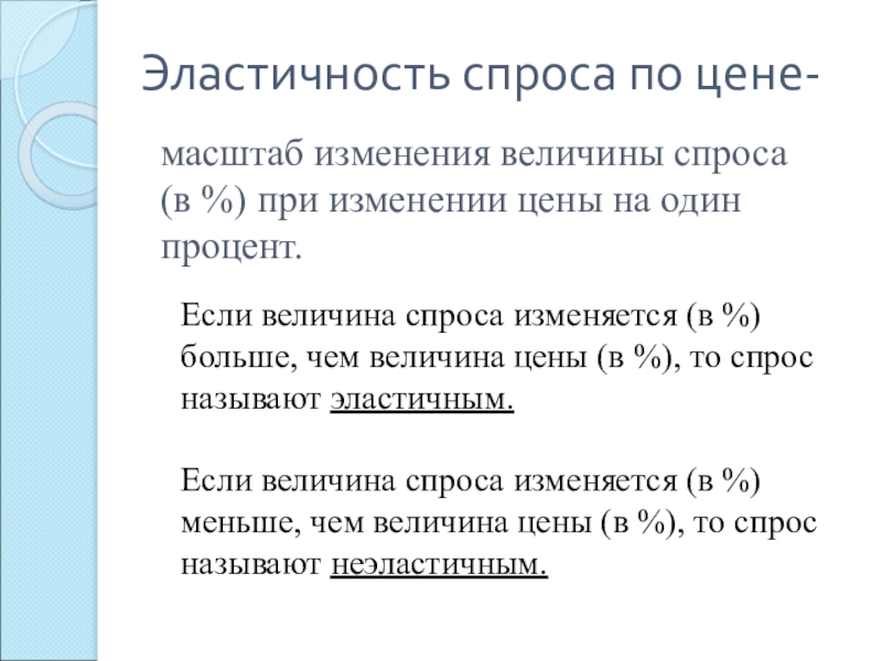 Если величина спроса изменяется (в %) больше, чем величина цены (в %), то спрос называют эластичным.