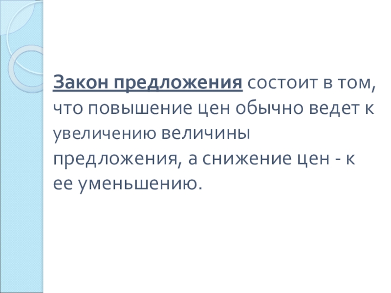 Слайд 16Закон предложения состоит в том, что повышение цен обычно ведет к