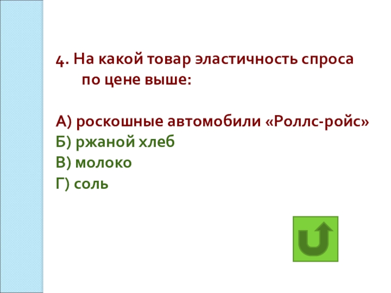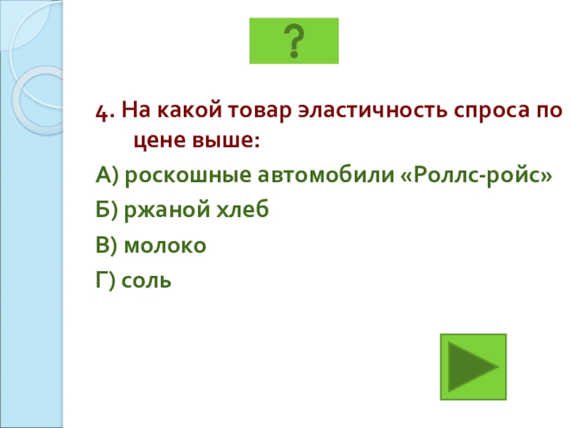 Слайд 314. На какой товар эластичность спроса по цене выше: