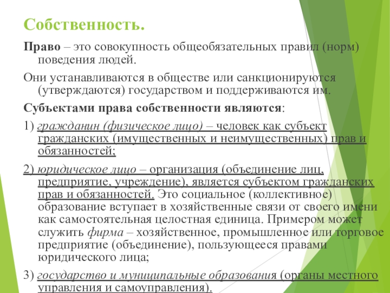 Собственность – это система субъект-объектных и субъект-субъектных отношений по поводу присвоения,