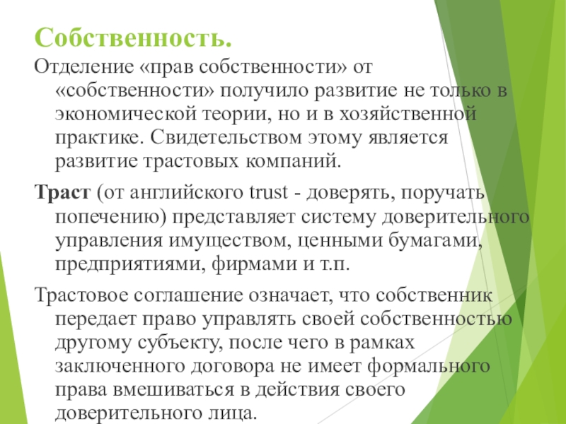 теории, но и в хозяйственной практике. Свидетельством этому является развитие трастовых компаний.