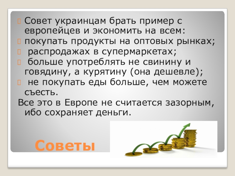 больше употреблять не свинину и говядину, а курятину (она дешевле);
