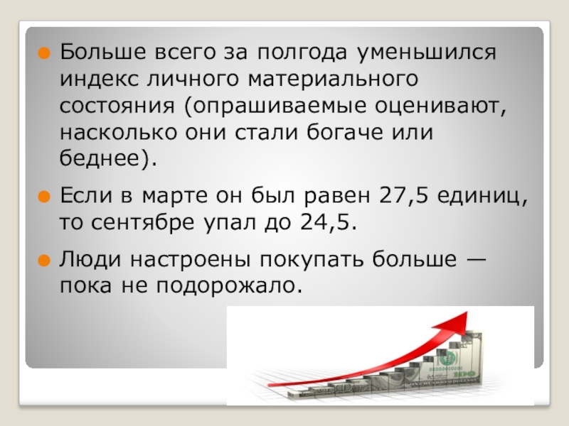 Больше всего за полгода уменьшился индекс личного материального состояния (опрашиваемые оценивают,