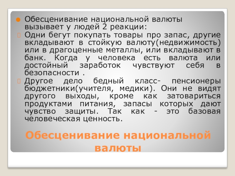 Обесценивание национальной валюты вызывает у людей 2 реакции:
