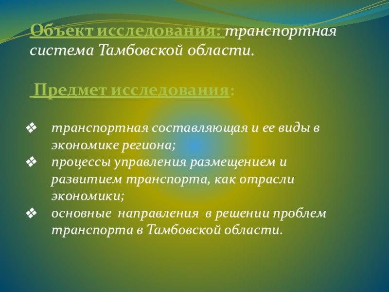 Транспортная система Тамбовской области: проблемы и направления реформирования.
