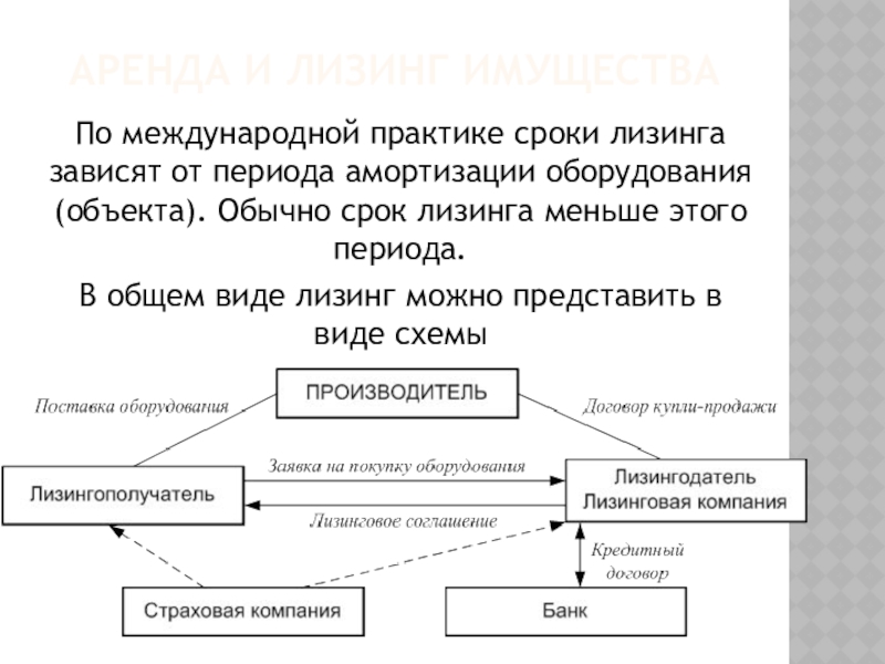 амортизации оборудования (объекта). Обычно срок лизинга меньше этого периода.