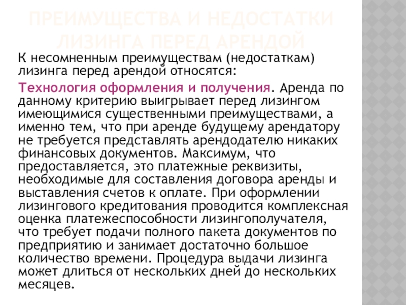 Слайд 24Преимущества и недостатки лизинга перед арендой
