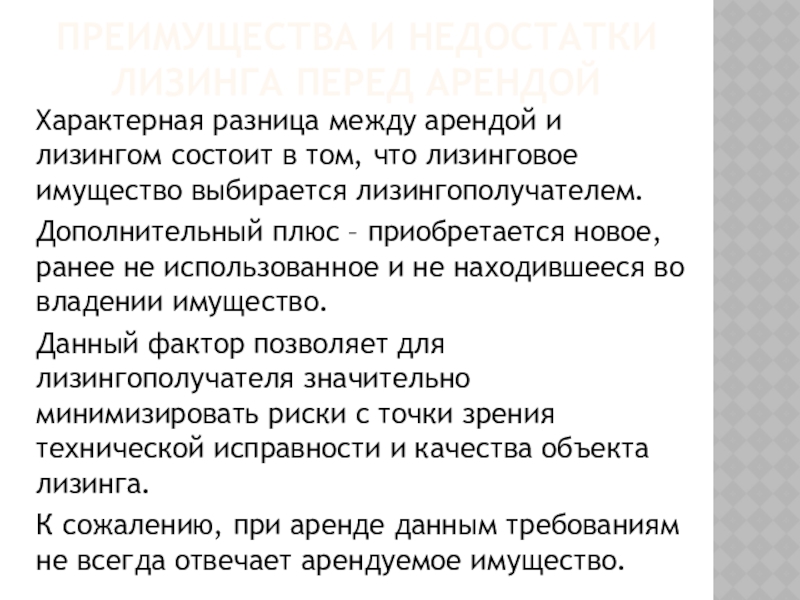 Слайд 26Преимущества и недостатки лизинга перед арендой