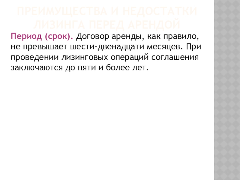 не превышает шести-двенадцати месяцев. При проведении лизинговых операций соглашения заключаются до пяти и более лет.