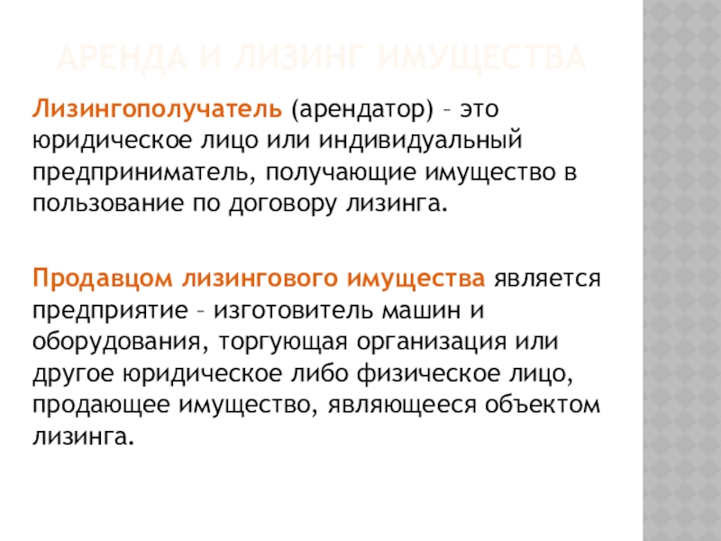 Лизингополучатель (арендатор) – это юридическое лицо или индивидуальный