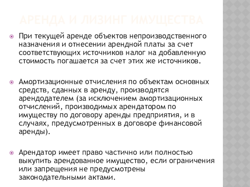 При текущей аренде объектов непроизводственного назначения и отнесении