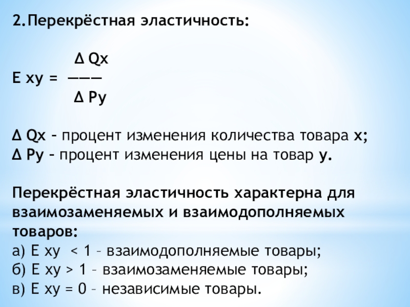 Перекрёстная эластичность характерна для взаимозаменяемых и взаимодополняемых товаров: