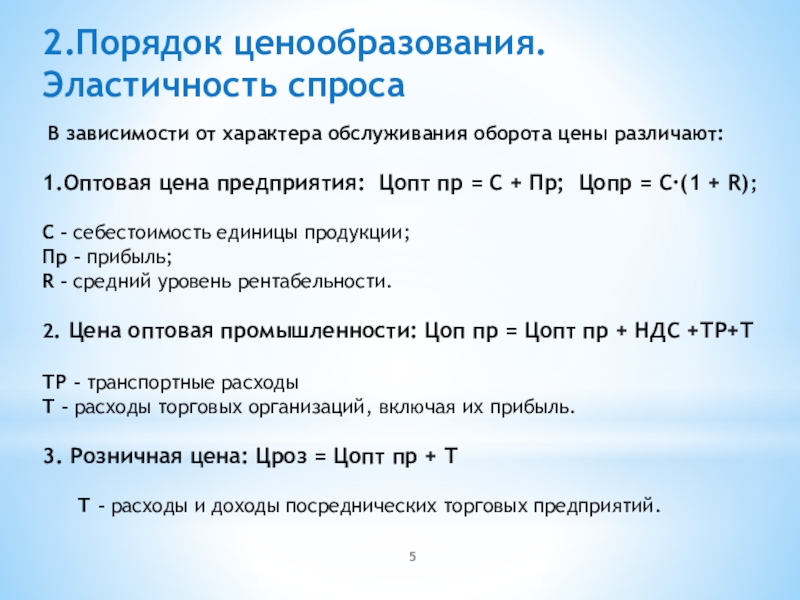Слайд 52.Порядок ценообразования. Эластичность спроса