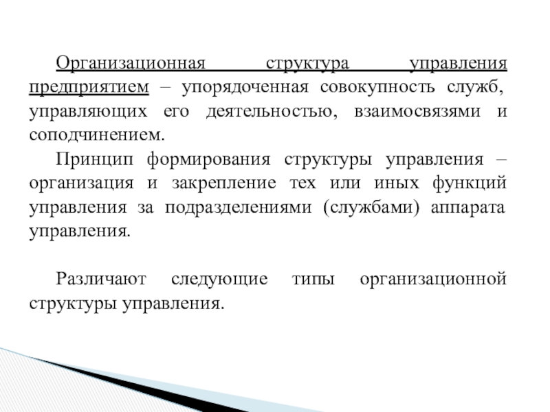 Слайд 5Организационная структура управления предприятием – упорядоченная совокупность служб, управляющих его деятельностью,