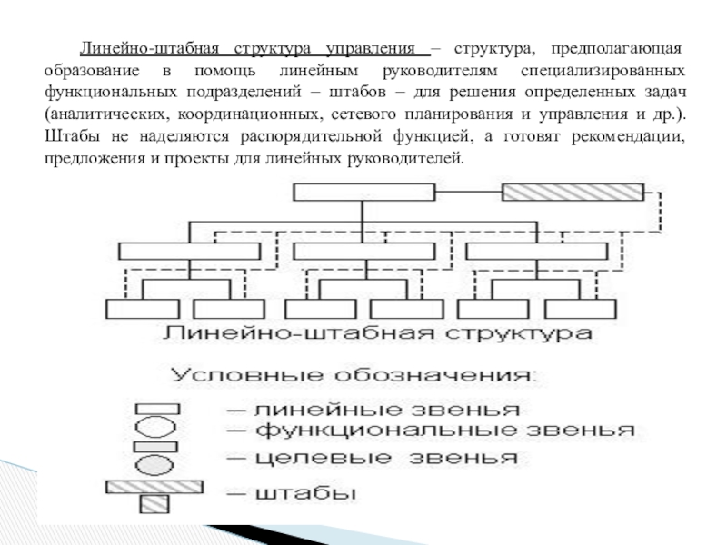 Слайд 7Линейно-штабная структура управления – структура, предполагающая образование в помощь линейным руководителям